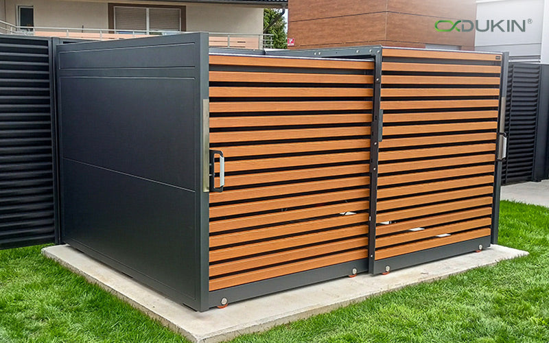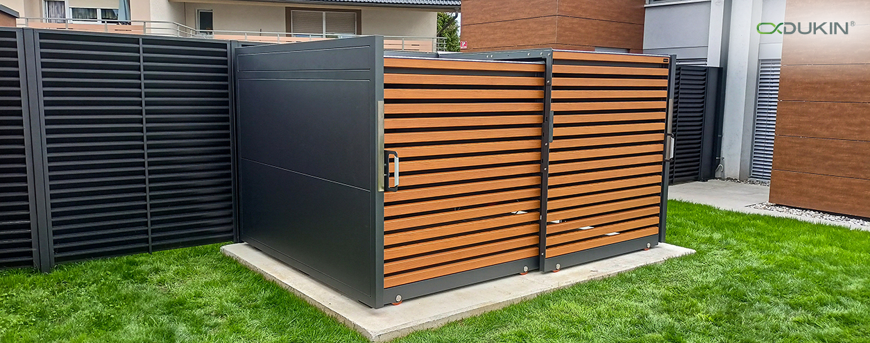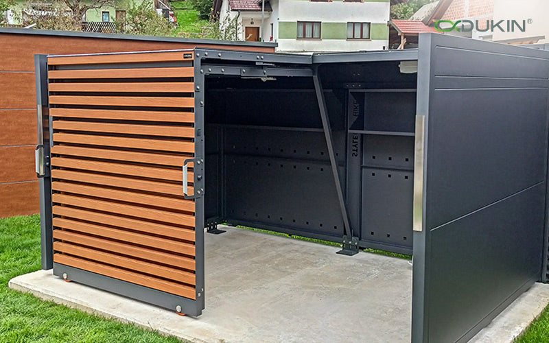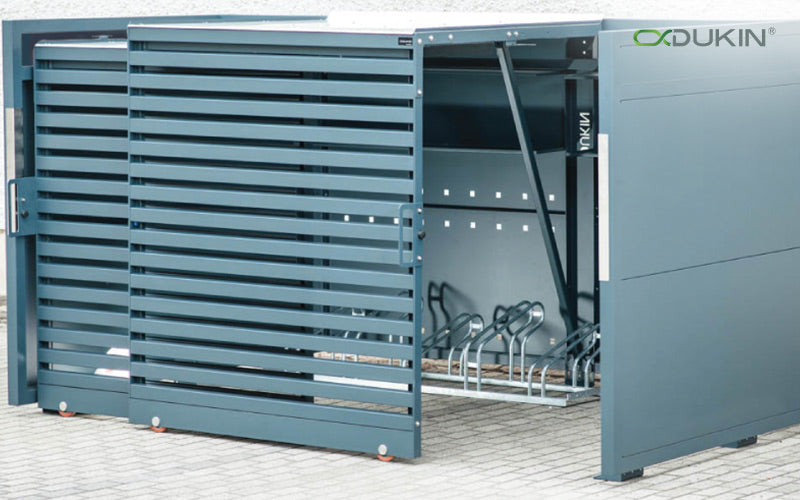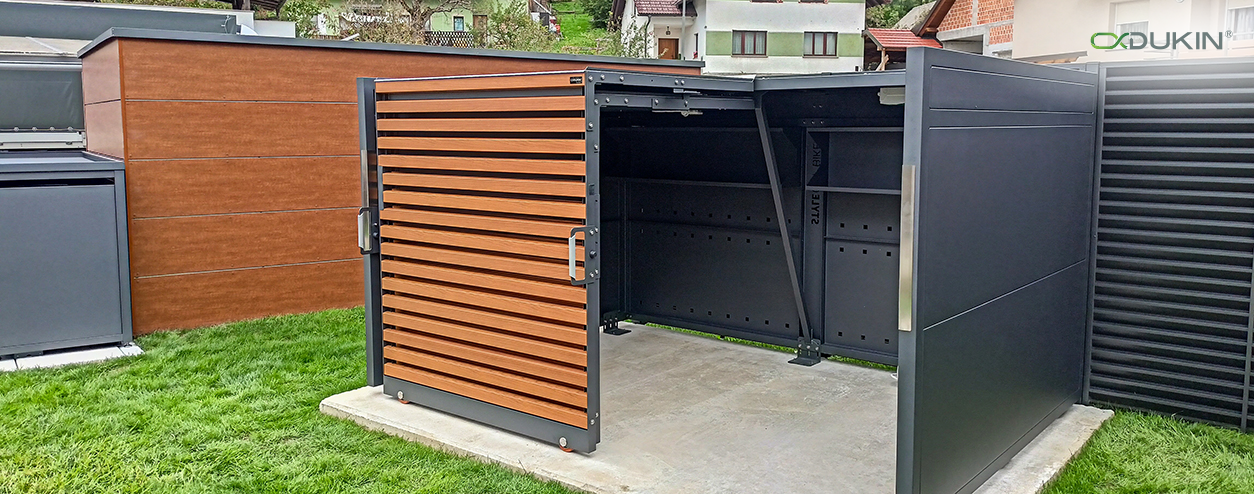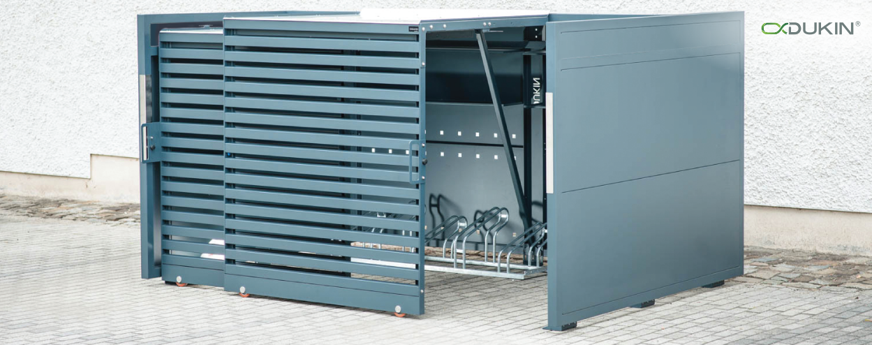 Due to the retractable roof, that opens along with the door, the bycycles shed is low and discreet and therefore suitable for installation in urban environments, e.g. next to apartment and business buildings, schools, parks, etc. You can also use them outdoors next to your house, as they beautify the surroundings with their elegant design.